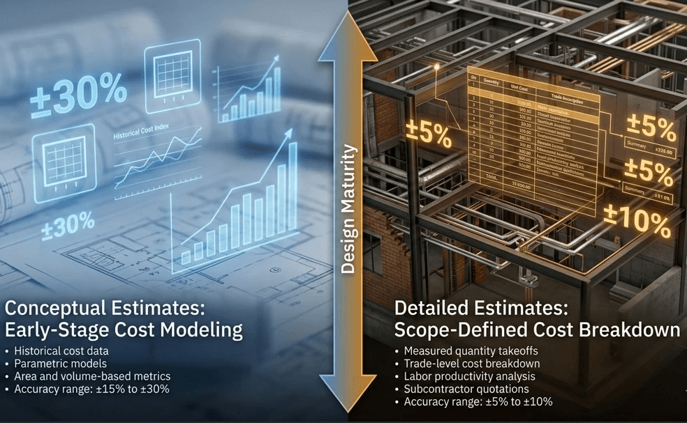 A technical guide to conceptual vs detailed estimates and how each impacts cost accuracy and project risk.